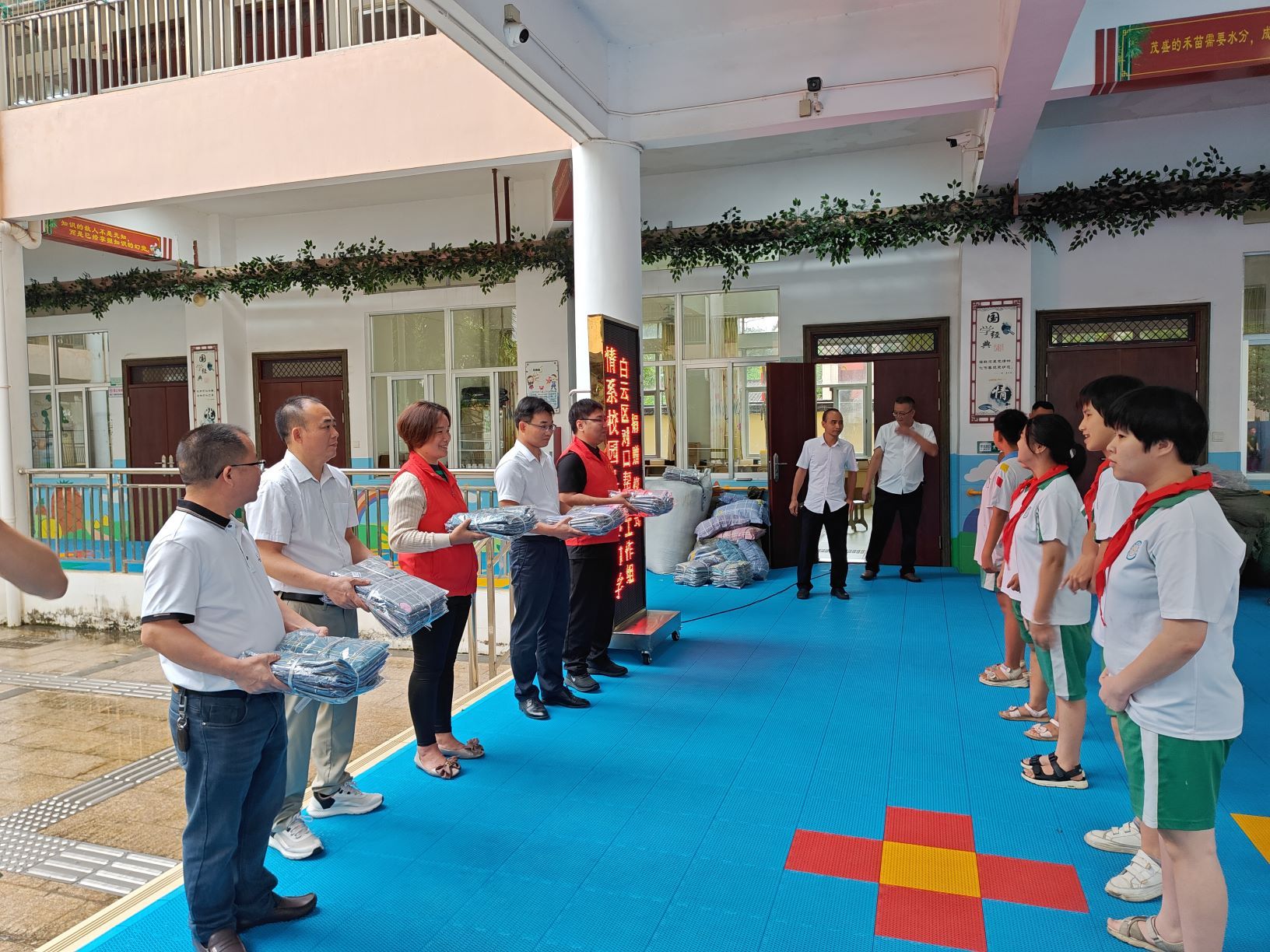 向麻章土产货学校捐赠各样竹素、糊口物质 通信员供图